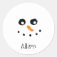 Cute Snowman Face Pegatinas de la ronda de nombres personalizados son una gran idea de oferta de perdedores o favores de partido de Navidades! Cara sonriente de muñeco de nieve con tu nombre debajo de él. PERSONALIZAR CON SU NOMBRE O TEXTO SIMPLEMENTE SEGUIENDO LA PLANTILLA DE ZAZZLE PROMPT.