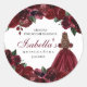 Pegatinas redondos de Quinceanera floral de Borgoña
