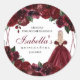 Pegatinas redondos de Quinceanera floral de Borgoña