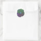 Esta gruesa hoja de pegatinas redondos muestra una fotografía de una flor de petunia que ha sido manipulada para que el centro de la flor sea azul. El resto de la flor tiene tonos morados, verdes y azules, lo que le da la impresión de una flor de arcoiris gruesa.