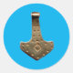 Los pegatinas de la ronda Gold Thor Hammer son para los hinchas Thor, coleccionistas de pegatinas, jugadores de juegos de rol, Norse Heathens, seguidores de los viejos usos y personalizados nórdicos, historia, escandinavos, coleccionistas de objetos Viking, fans de Vikings y personas de herencia de los nórdicos. El Hammer de Gold Thor es arte original de Steamy Raimon. * muestra el símbolo vikinés de Thor; inspirado en la exhibición de un museo ubicado en Dinamarca; probablemente diseño noruego; se ataron corredores de Odin y Tyr