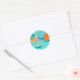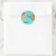 Cada día puede ser un día en la playa con estos Pegatinas Retro Surfer Dude. El diseño de arte minimalista, al estilo de los años 60, cuenta con un tipo dorado, rubio y surfista, todo listo para tomar una ola. Nuestro surfista en forma mira al océano a través de las puertas correderas de cristal de su casa frente a la playa. Está parado en su sala de estar de color agua. Podemos ver un aqua y turquesa, una pared de piedra y una moderna silla naranja de mediados de siglo. En el lado opuesto de la puerta de cristal se ve un patio. Más allá, hay una playa de arena dorada, palmeras balanceadas, un océano azul pavo real y un cielo acuático. A lo lejos, podemos ver una verde azulada isla volcánica, que por el momento está latente. Surfer Dude sostiene una tabla azul y lleva pantalones cortos azules con estampado de tiki. Atrapa algunas olas y comparte el amor con este diseño kitsch de verano!