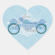 Una motocicleta en tonos azules y violetas con curvas suaves y remolinos se alza contra el entramado blanco sobre un fondo azul floral que llena a este pegatina boda de ciclistas con romance. De mi imagen original creada digitalmente.