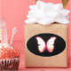 pegatinas negros con una mariposa rosada que brilla intensamente.