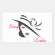 Imagen de una "dama sexy con lápiz de labios rojo y un gorra negro a un lado" en estos "Pegatinas blancos Rectangle" que fue diseñada por la tienda Warrior_Wares_Inc. Prueba nuestra colección de Pegatinas Sexy Lady Rectangle.
