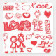 Los niños dibujados a mano miran, pegatina cuadrado de corazones, amor, flores, etc.