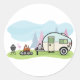 Como ir a acampar con un acampador, este diseño es perfecto. Es un camper de estilo vintage estacionado al lado de una llamativa fogata. Este diseño de camper de estilo vintage se ve muy bien en este Pegatina