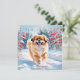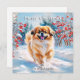 Estos Navidades elegantes con fotos de un perro pekingés disfrutando de un paseo por un paisaje nevado, con bayas rojas y árboles verdes en un día brillante. En la parte superior está el saludo 'Feliz Navidad' en una tipografía de escritura elegante, mientras que el texto de abajo puede ser personalizado con tu(s) nombre(s) u otras palabras. Llena de encanto canino, la tarjeta es ideal para los propietarios de Pekingeses y para los amantes de los perros.