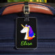 Pelea arcoiris unicornio etiqueta de equipaje negr