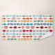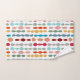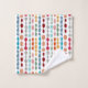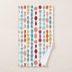 Este conjunto de toallas tiene un diseño moderno de mediados de siglo, con círculos y óvalos unidos en colores retro unidos en un campo de blanco.