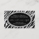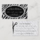 Tarjeta de visita simplemente elegante del estampado de zebra con recordatorio de la cita en la parte trasera - perfeccione para un peluquero, un salón de pelo o un balneario. ¡Personalizar con su propio texto para una tarjeta perfectamente personalizada que asirá la atención de sus clientes! {{Tecleo "PERSONALIZAR" para cambiar el color de fondo, color de texto, fuente y para más opciones que corrigen. Para los colores o la ayuda específicos con la disposición, cáigame una línea en mel@creativemel.com - me placeré ayudar!}}