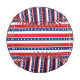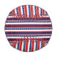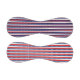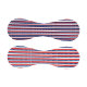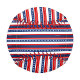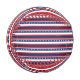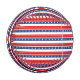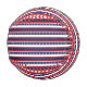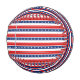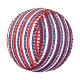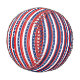 Béisbol con costura roja y diseño de rayas rojas y azules con estrellas blancas en un fondo blanco.