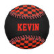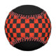 Añade un poco de brillo a tu próxima práctica, con este béisbol rojo y negro único. Un patrón de cuadros rojos y negros decora una sección del béisbol, con negro sólido, en el otro lado. Personalice el texto rojo para leer lo que desee. Hace una gran idea de regalo.