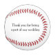 Personaliza este béisbol con un mensaje a cada lado. Este tiene el nombre de la novia y el novio, la fecha del boda y la frase "¡Una gran trampa!". La otra parte dice Gracias por ser fiesta de nuestro boda. Estos hacen regalos divertidos para dar a la fiesta de boda, especialmente al mejor hombre, padrinos o portador de anillo. También trabajan muy bien para otros clientes, como el padre de la novia, hermano del novio. Son especialmente geniales para un boda temático de béisbol.