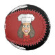 Cabeza del chef con gorra, pañuelo rojo y texto personalizado.