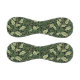 Una huella follaje con hojas claras de color verde oliva o salvia entrelazadas en verduras más oscuras. La sombra de un verde cazador o de un verde bosque oscuro crea la gran mayoría de las hojas. Éstas sobre un fondo negro.