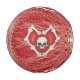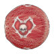 Este béisbol es rojo profundo con corazones rojos góticos delineados con huesos con cráneos en el centro sobre un patrón de línea espiral. Personalizar el texto con las plantillas.