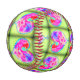 corazones rosados dibujados a mano con remolinos sobre fondo verde