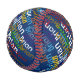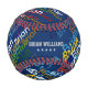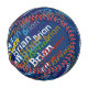 Una pelota de béisbol con un patrón de nombres de colores personalizados... para jugadores elegantes.