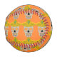 Este impresionante béisbol presenta una imagen de diseño gráfico de un cráneo inspirado en el Día de los Muertos de México. El cráneo es de color gris pálido y lleva un sombrero amarillo. Tiene dientes de oro y girasoles mexicanos, también llamados Tithonias< en lugar de ojos. El sombrero tiene un cactus encima y está cubierto por motivos de remolinos de bonito y pimientos de chile rojos y verdes. El cráneo está cubierto de flores de color bonito de diferentes tipos.