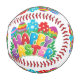 Un colorido béisbol temático de Pascua con Happy Easter Text y huevos coloridos.