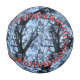 Este impresionante béisbol presenta una fotografía atmosférica de un árbol tomado en un bosque británico. Las ramas y texturas retorcidas se contraponen a la luz que se desvanece del cielo de la noche.