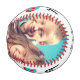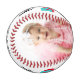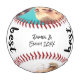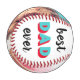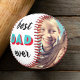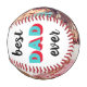 Celebra el mejor papá de la historia y fanático del béisbol con este béisbol personalizado que incluye 2 fotos de sus hijos y "DAD" escrito en divertida tipografía retro roja y verde azulada.