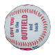 Crea tu propio béisbol firmado para el mejor papá de la historia para el día del padre o cualquier otra ocasión. La plantilla de fotos está lista para que subas una imagen, que se muestra en formato retrato oval. También se pueden sumar hasta 4 firmas, cada una de las cuales está firmada en una escritura a mano diferente. Borre el texto de los cuadros de plantilla para las firmas que no necesite. El diseño está más escrito con la inscripción "Mejor Papá Nunca" por un lado y "Te amo al campo exterior y de vuelta" por el otro lado. Está escrito en negritas tipografías de gran tamaño en gris, azul de medianoche y rojo profundo.