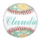 Pelota De Béisbol Monograma lindo naranja flores en verde