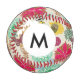 Pelota De Béisbol Monograma Patrón floral en estilo retro