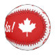 Juega con papá en tu patio para celebrar el Día de Canadá. Este béisbol rojo y blanco presenta la icónica hoja de arce canadiense y el texto que dice "¡Oh, Canadá!"