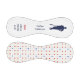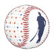 Este es un gran béisbol para usar como presentación de fin de año a un jugador. O cambiar completamente el texto y darle como un aguijón a un entrenador. Presenta una silueta azul oscuro de un jugador de béisbol inclinado sobre un murciélago. Hay tres campos de texto para el texto personalizado, también en azul y rojo. La imagen y el texto se colocan sobre un fondo blanco. La mitad de la bola es un patrón atractivo de estrellas rojas, doradas y azules sobre un fondo blanco. ¡Haz que diga lo que quieras!
