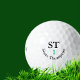 Un sencillo y moderno monograma de 2 iniciales para identificar sus bolas en el pasto... diseño elegante en blanco y negro con letras iniciales y nombre... bola de suerte escrita en un pequeño estilo de letra de guión.