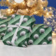 Una pelota blanca de golf sobre un tejo blanco frente a un fondo verde.