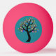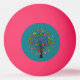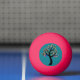 Bola de ping-pong rosada brillante con un árbol de mariposas en un lado y un árbol con las hojas brillantes coloridas en el otro lado.