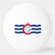 Balón de ping pong con bandera de la ciudad de Cincinnati, Ohio; bandera blanca con tres olas azules con "C" roja en el centro