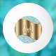 Personaliza el monograma de oro grande y el nombre en blanco sobre ola dorada con diamantes blancos en verde azulado.
