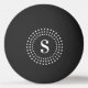 Balón de ping pong negro con tu primer monograma dentro de un borde de puntos radiales retro.