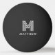 La bola de ping pong con su monograma inicial en blanco con su apellido a continuación. Los colores de fuente se pueden personalizar en la herramienta de diseño.