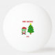 Aquí pueden admirar uno de los dibujos de un Navidad, llamo "Navidades FrankenCheese", FrankenCheese vestido como Santa, con un árbol de Navidad decorado, y el texto dice, "Feliz Navidad". Ahora puedes pedir "Navidades FrankenCheese" en esta bola de ping pong para desearle a alguien una feliz Navidad".