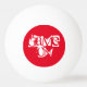 La bola de ping pong se muestra en rojo y blanco con texto; Juego activado. Personalizar este artículo o compra tal cual.