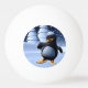 Representación digital 3D de un pingüino bailarín lindo usando un gorra marinero en un paisaje invernal