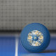 This ping pong ball features a retro hibiscus flower, tropical palm trees, and blue pattern. It's reminiscent of classic Hawaii or Tahiti, almost like a tropical shirt pattern. Your monogram initial appears in yellow against a blue floral background, which has a simulated brushed metal look, in the center. This nostalgic design might remind you of tropical beaches and relaxing waves whenever you see it. This ball coordinates with a customized ping pong paddle. Make sure to type your initial in the Personalize section.