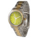 La pelota de tenis amarilla y borrosa es el centro de este reloj elegante