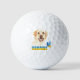 Una manera dulce para que los amantes del perro muestren su apoyo a Ucrania. El diseño de la bola de golf incluye acuarela amarillo Labrador Recuperador ilustracion de perro con texto "Ucrania" y mariposa en los colores azul y amarillo de su bandera nacional