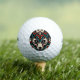 Se trata de una cara decorativa de lobo hecha a mano y estilizada con estampados aztecos en colores negro, rojo, turquesa y beige.
