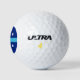 Bola de Golf con bandera de Anaheim, California. Una bandera azul con seis estrellas blancas y una banda azul