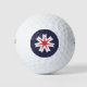 Bola de golf con un diseño con la bandera de la prefectura de Hokkaido en Japón (北 海 道 , Hokkaidō), bandera azul con símbolo blanco y rojo