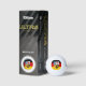 Bolas de golf con bandera de Sarre; diseño con tricolor horizontal de negro, rojo y amarillo (dorado), con escudo de armas estatal en el centro