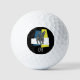 Chihuahua linda silueta de perro parrilla patrón abstracto amarillo y azul con fondo tricolor en un círculo negro. Personaliza tus tres iniciales en blanco bajo la forma de perro. Perfecto para el amante del perro en tu vida o el padre que ama el golf, estas pelotas de golf son la manera perfecta de mostrar tu pasión.